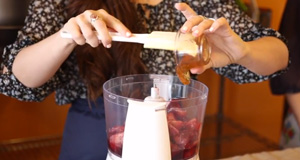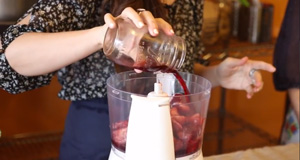 This is such a simple recipe. The hibiscus makes it exotic tasting and refreshing! It's absolutely perfect for summer and will honestly whip up in an instant. In the video, you'll see that our strawberries were just a bit too soft. Lessening the thaw time will give you a product that is scoop-able and ready to serve immediately.